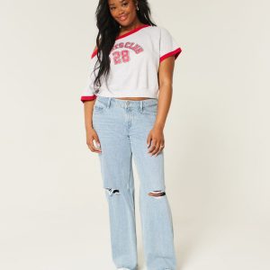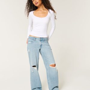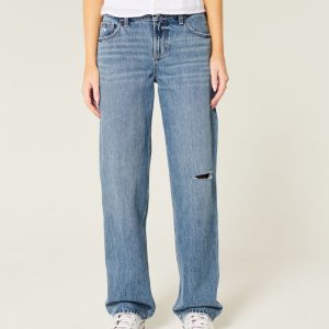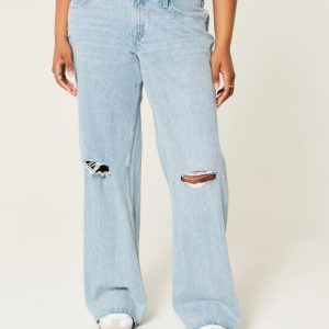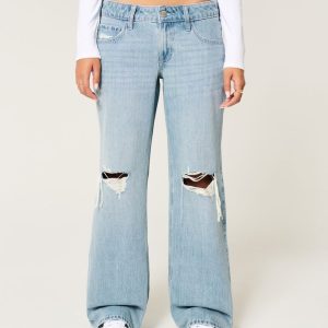 Women’s Low-Rise Ripped Light Wash Relaxed Straight Jeans