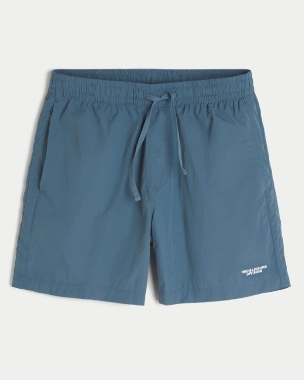 Ultra-comfortable track shorts in 100% nylon, designed with a drawstring waist and right zipper pocket. Embroidered Rec & Leisure Division detail at left leg. Hits above the knee. Imported.