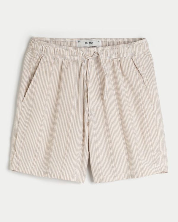 Ultra-comfortable shorts in seersucker fabric, designed with a pull-on drawstring waist and 8″ inseam. Pockets. Hits above the knee. Imported.
