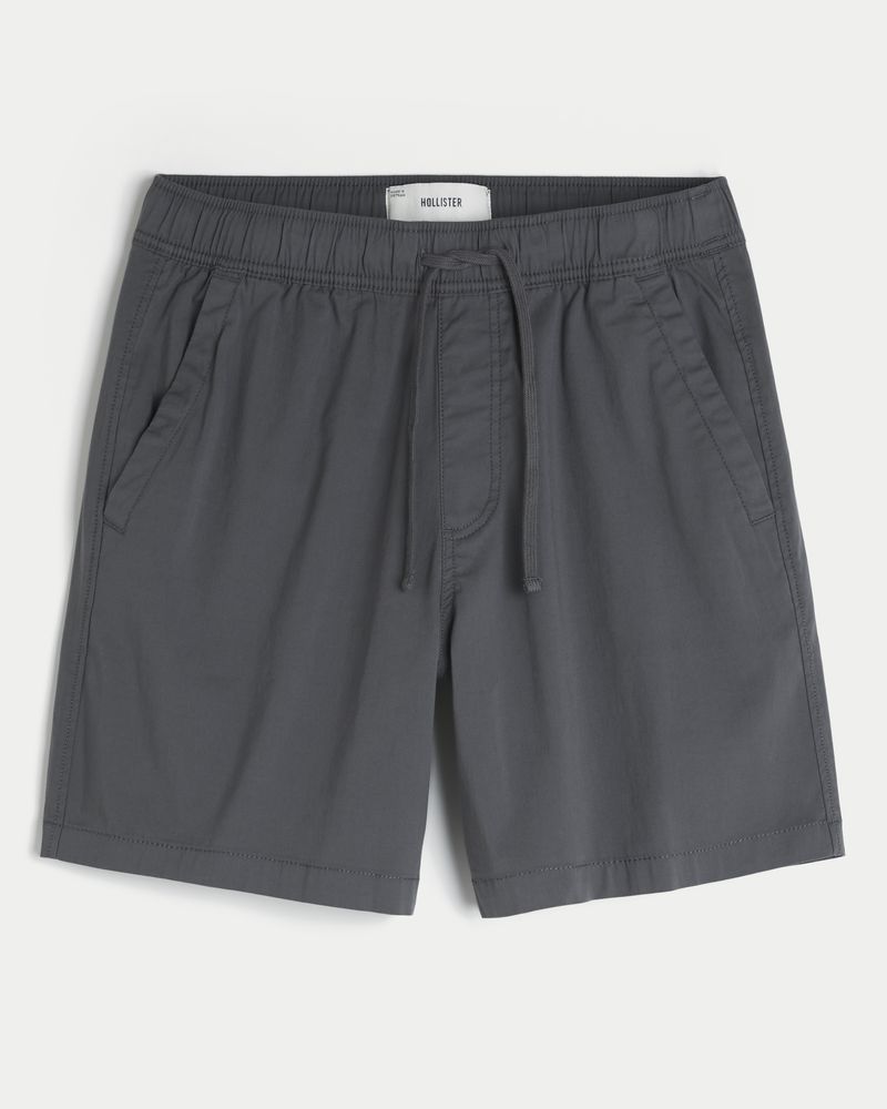 Comfortable twill shorts that hit above the knee. Drawstring waist, pockets. Imported.