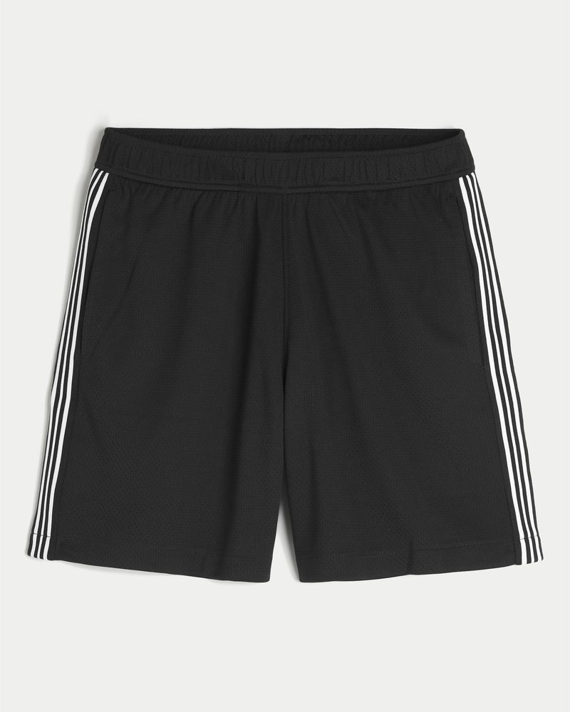 Comfortable basketball in soft mesh fabric, with side taping. Banded waist, pockets. Imported.