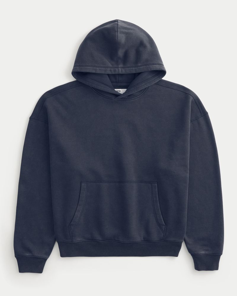 A super soft fleece hoodie with a front pouch pocket, hood and long sleeves. Baggy Cinch Fit. Imported.