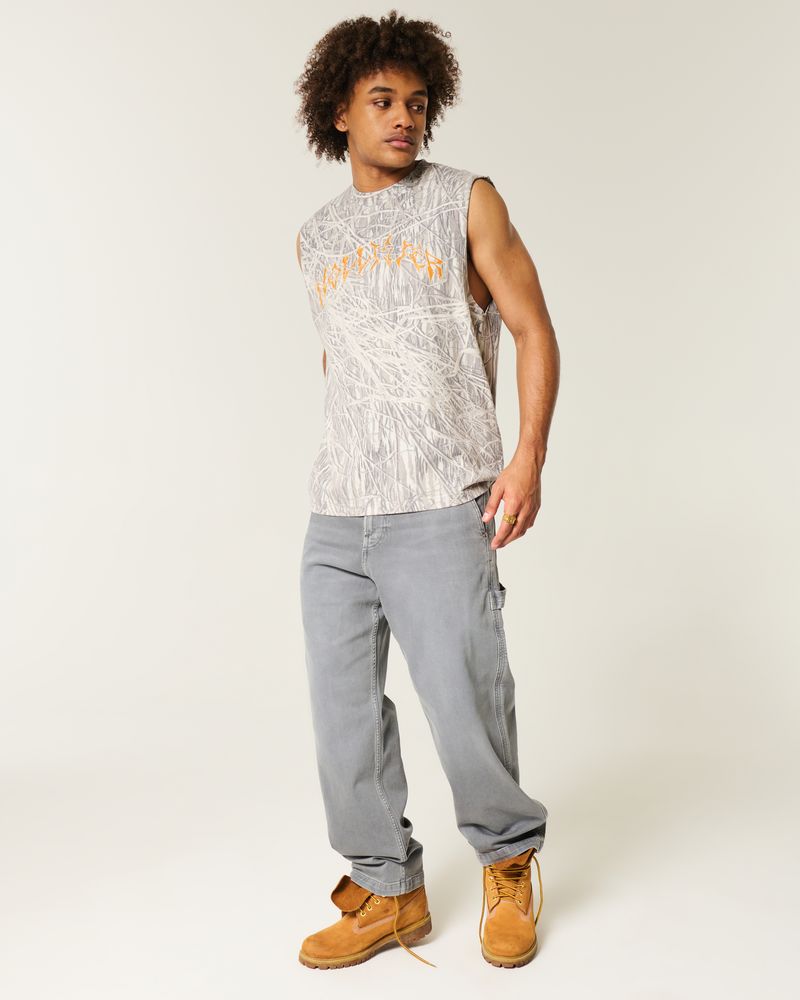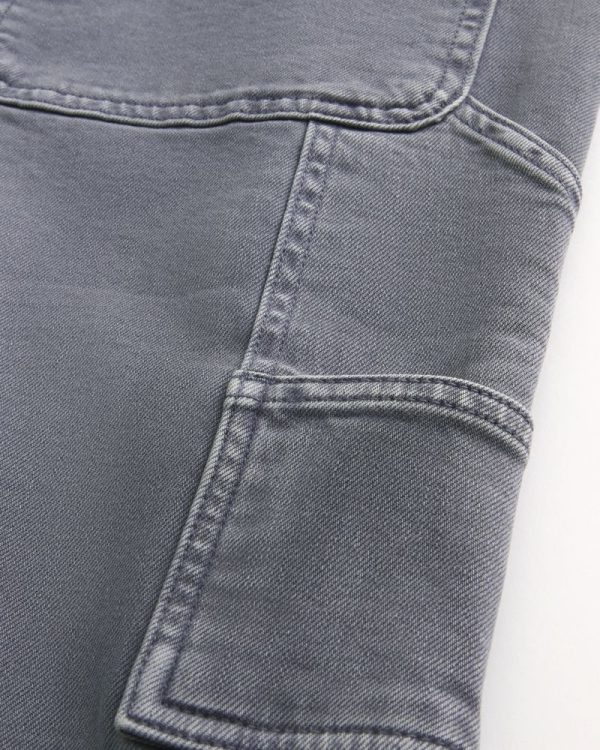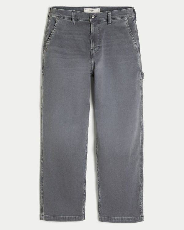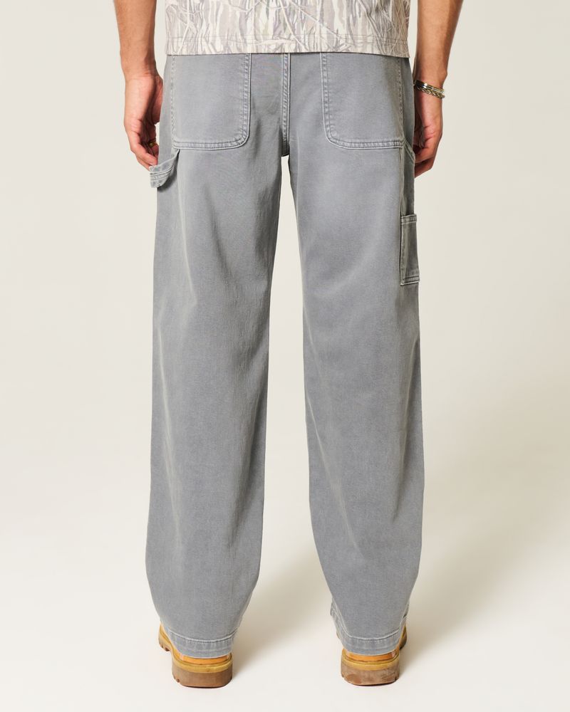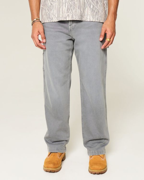 Comfortable denim jeans designed with a baggy leg, left painter loop and extra pockets. Fading and whiskering. Imported.