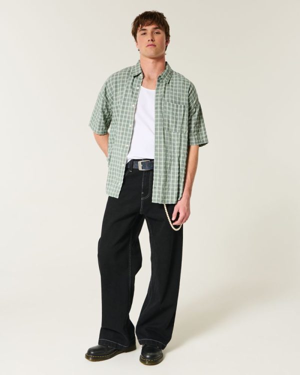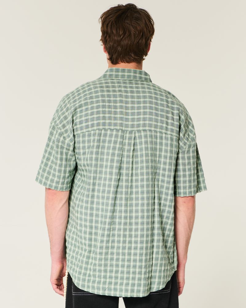This classic, comfortable short-sleeve shirt features a plaid pattern and left chest pocket. Full button closure, collar. Baggy Fit. Imported.