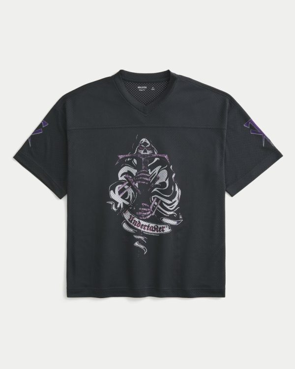 Made with soft mesh fabric, this football jersey features official licensed Undertaker WWE print graphics at the front, back and sleeves. V-neckline, short sleeves. Baggy Fit. Imported.