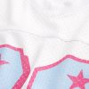 This comfortable football jersey is made with soft mesh fabric and features a print number graphic and striped short sleeves. V-neckline. Boxy Crop Fit. Imported.