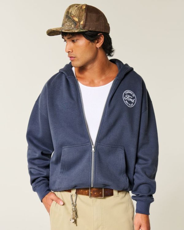 Men’s Boxy Ford Graphic Zip-Up Hoodie