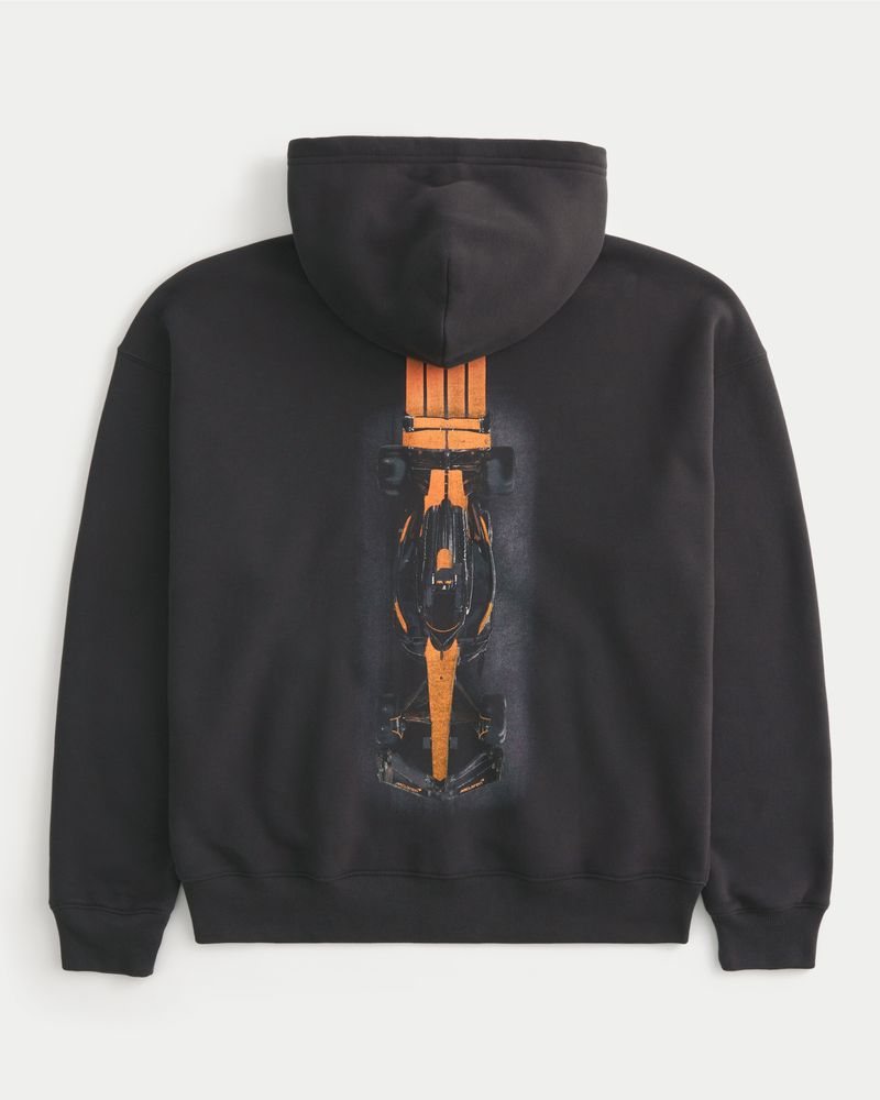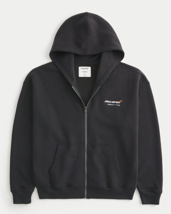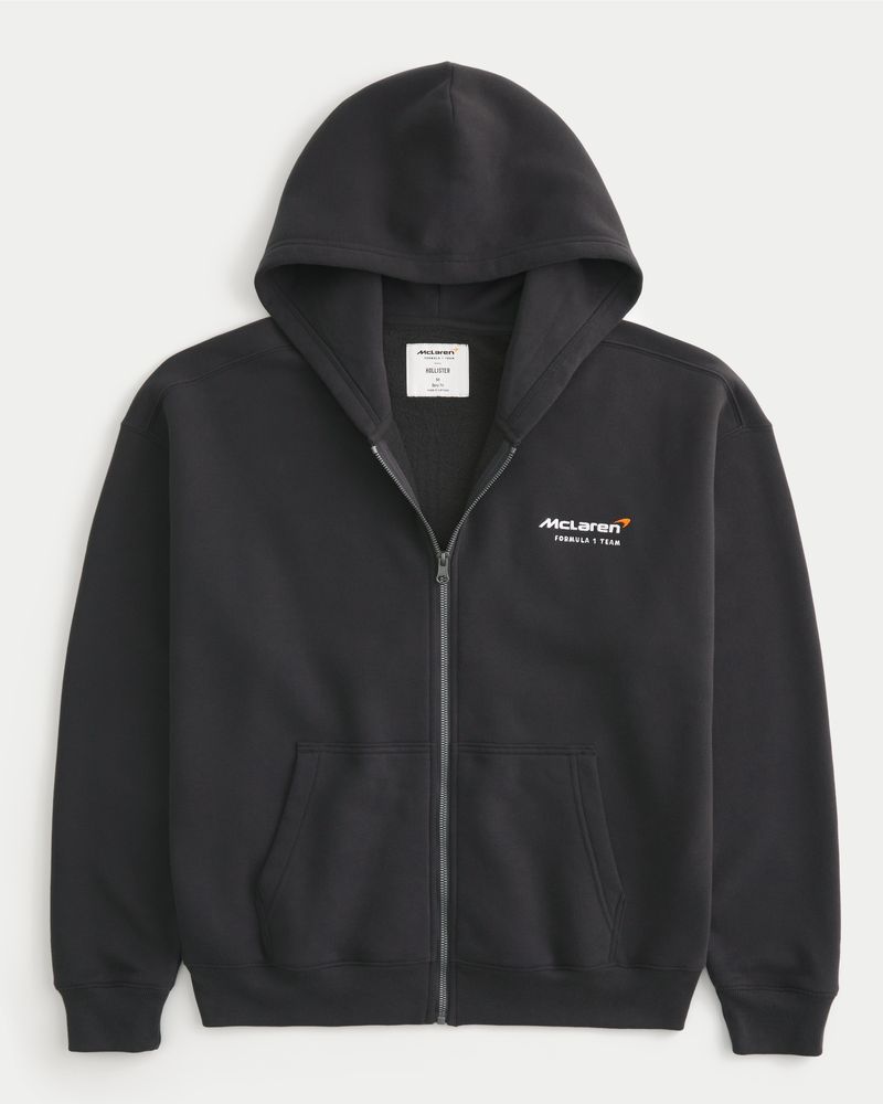 This super soft fleece hoodie features official licensed McLaren Formula 1 Team graphic embroidery at the left chest and print graphics at the back. Full zip-up closure, front pockets, long sleeves, hood. Boxy Fit. Imported.