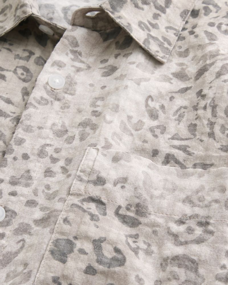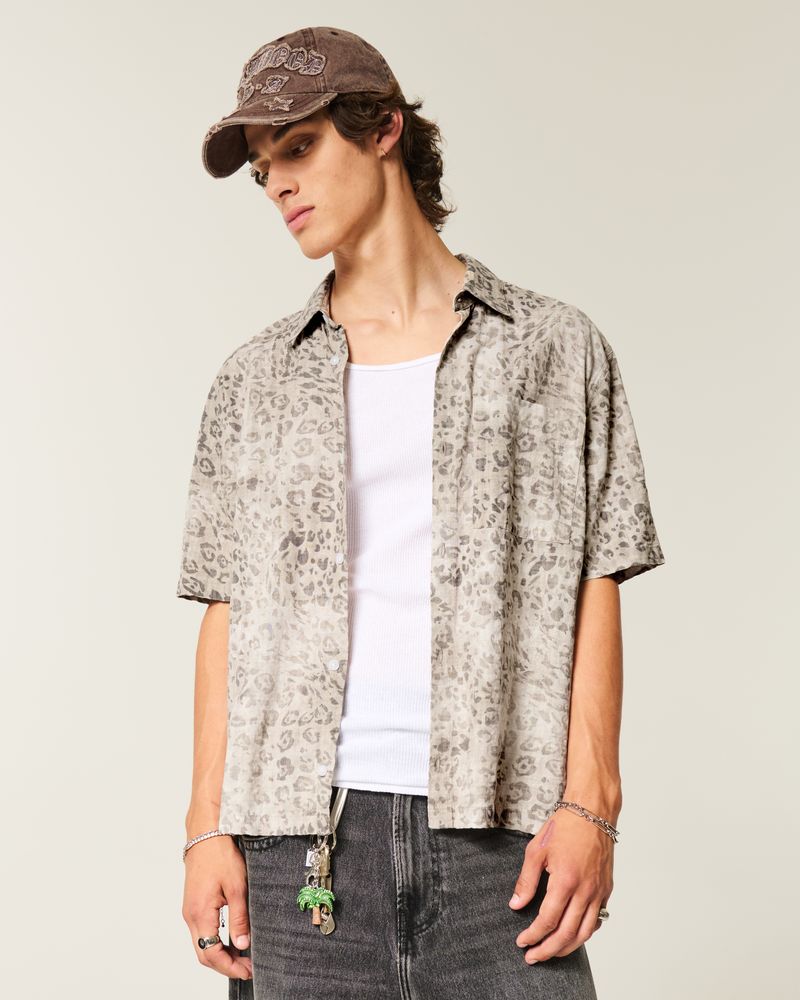 This classic short-sleeve shirt has a full button closure and left chest pocket. Short sleeves, collar. Boxy Fit. Imported.