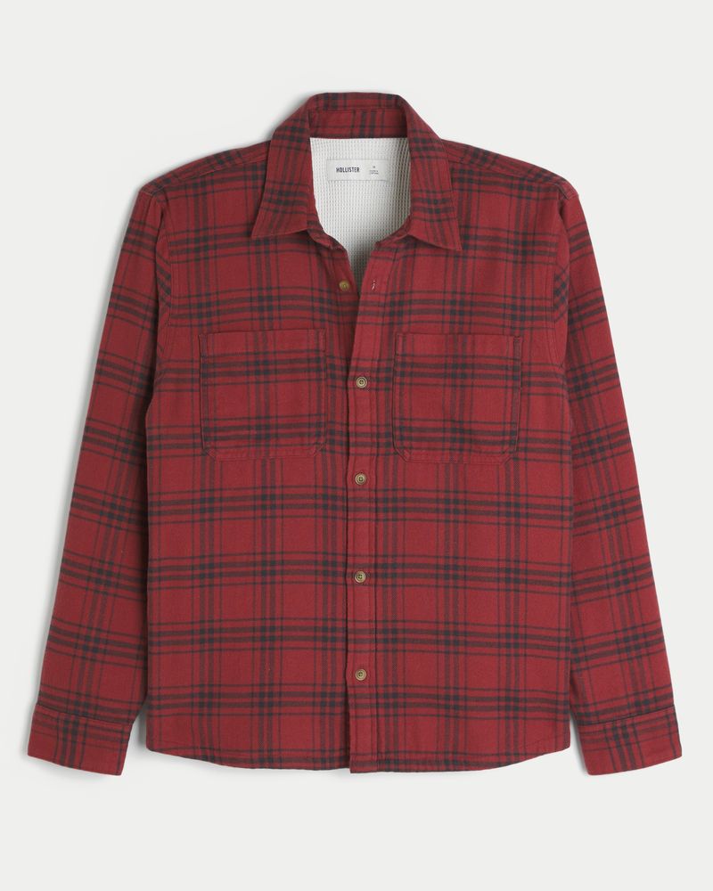 A classic flannel shirt featuring super soft thermal waffle lining, a full button closure and chest patch pockets. Collar, long sleeves. Boxy Fit. Imported.