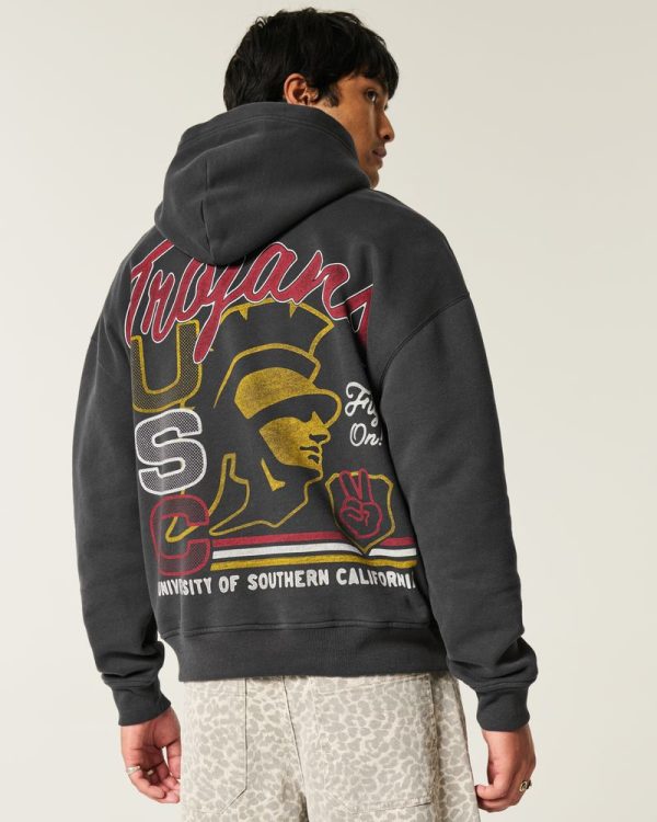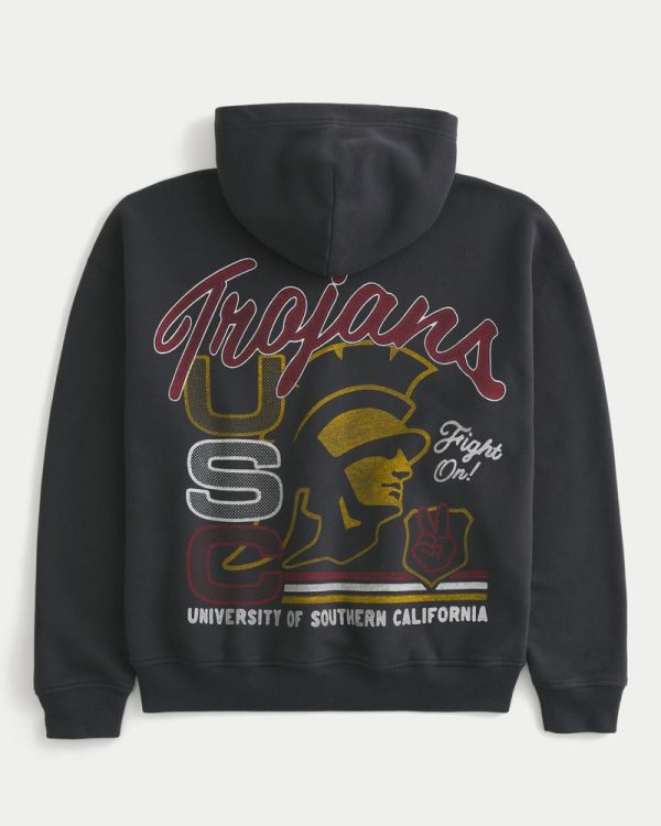 A super soft fleece hoodie featuring official licensed USC University of Southern California Trojans print graphics at the left chest and back. Front pouch pocket, hood, long sleeves. Imported.