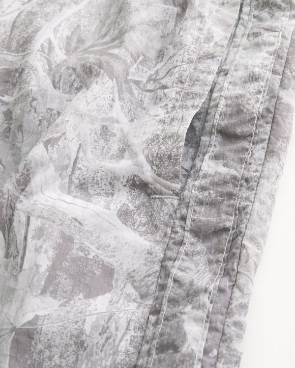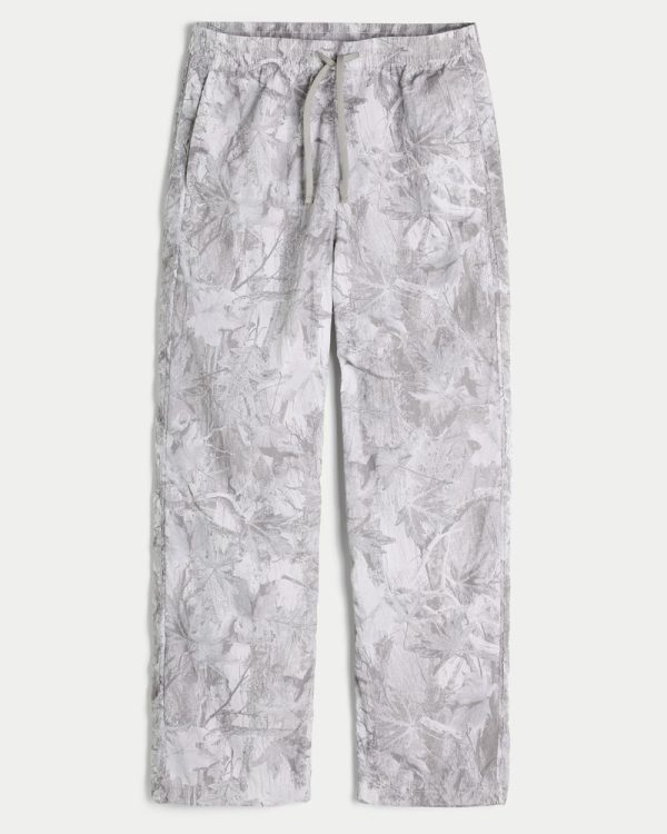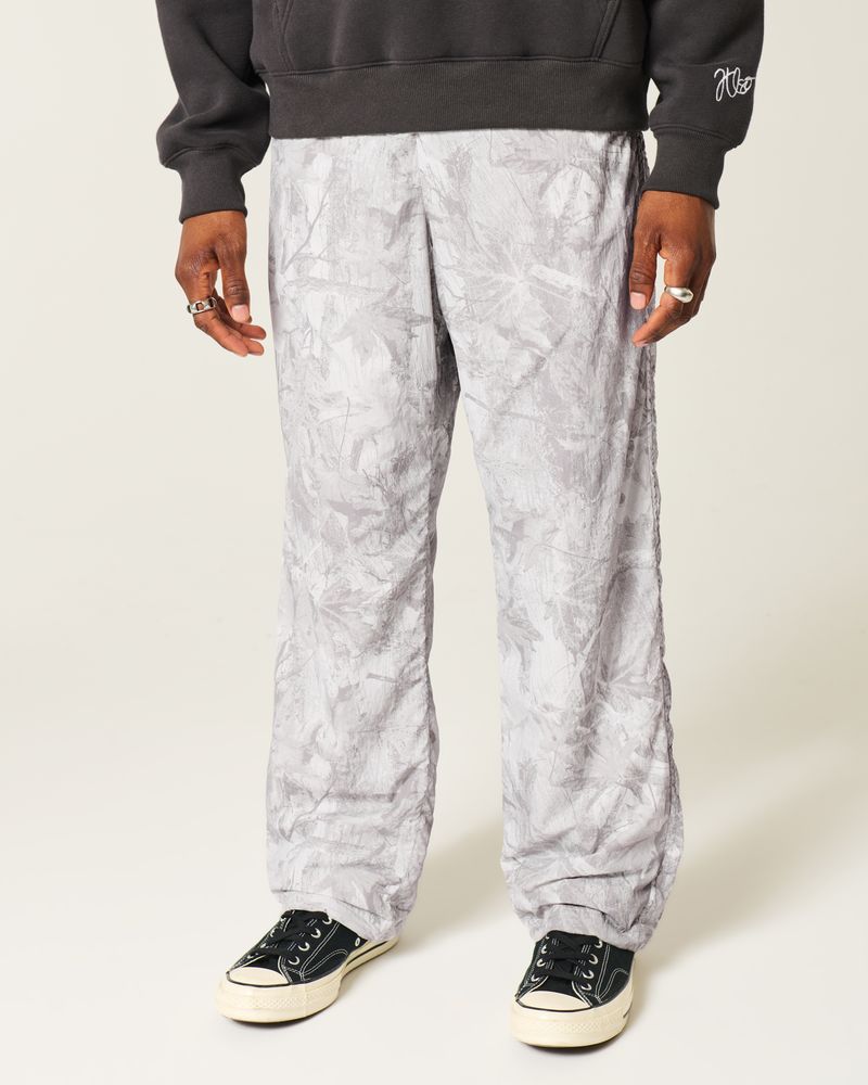 Comfortable, classic track pants designed with a baggy leg and drawstring waist. All-over camo pattern. Imported.