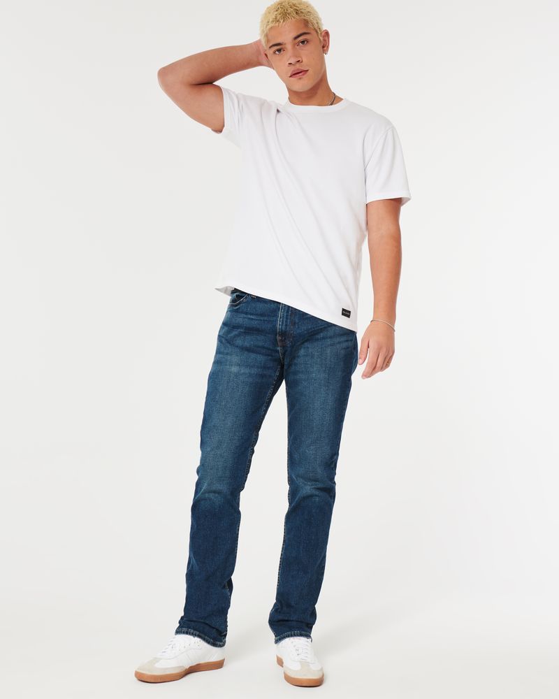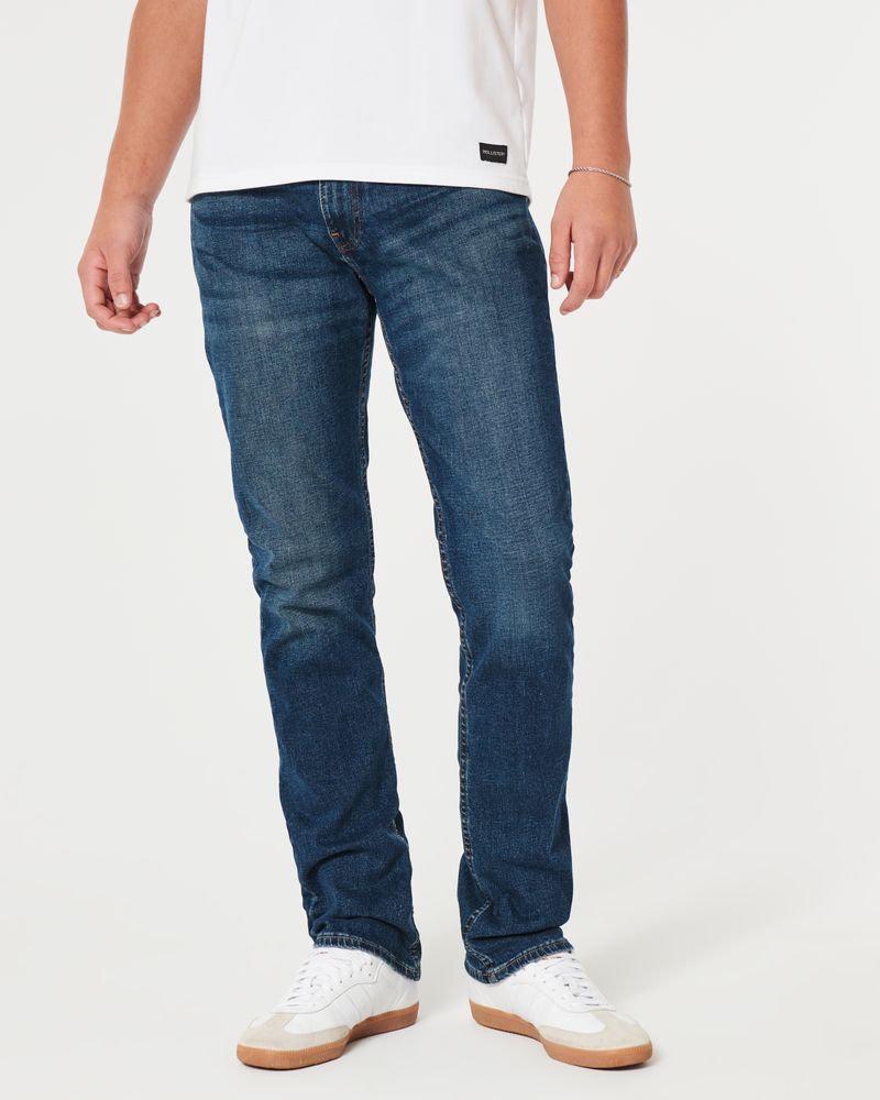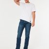 Designed with a slim fit through the hip and thigh with a 15.5” leg opening, these dark wash jeans feature Hollister Epic Flex denim. Fading and whiskering. Imported.