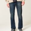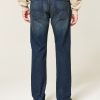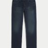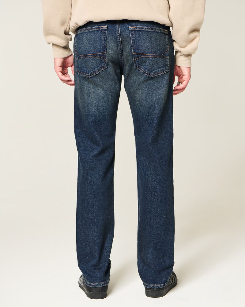 Comfortable denim jeans with stretch, designed with a slim straight leg. Dark wash with fading and whiskering. Imported.