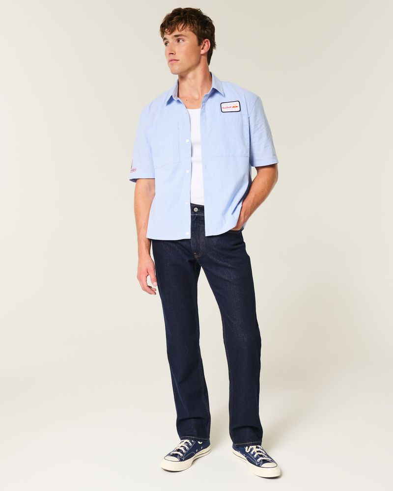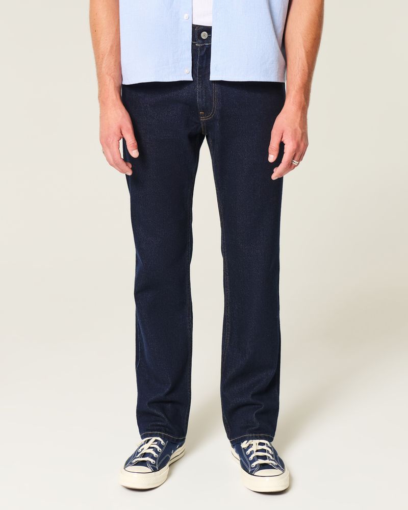 Comfortable Y2K-inspired jeans in a dark wash, designed with a straight leg. Imported.