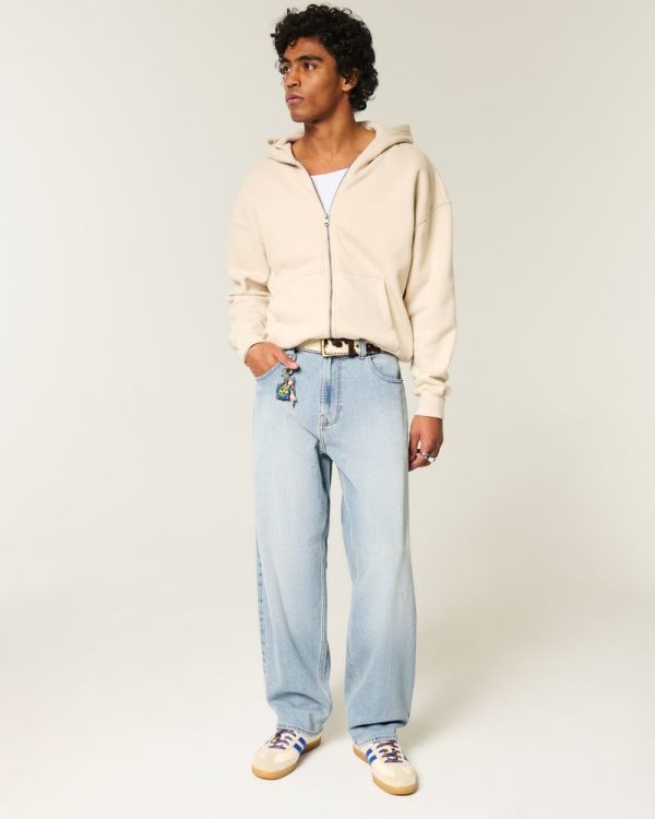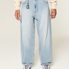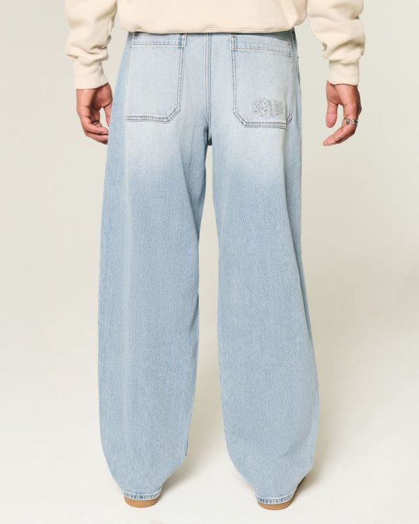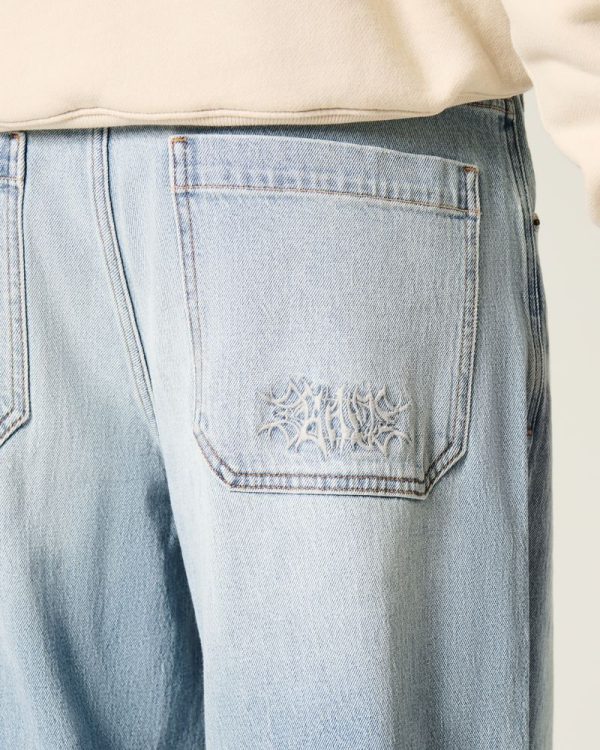 Embroidered Light Wash Skater Baggy Jeans
