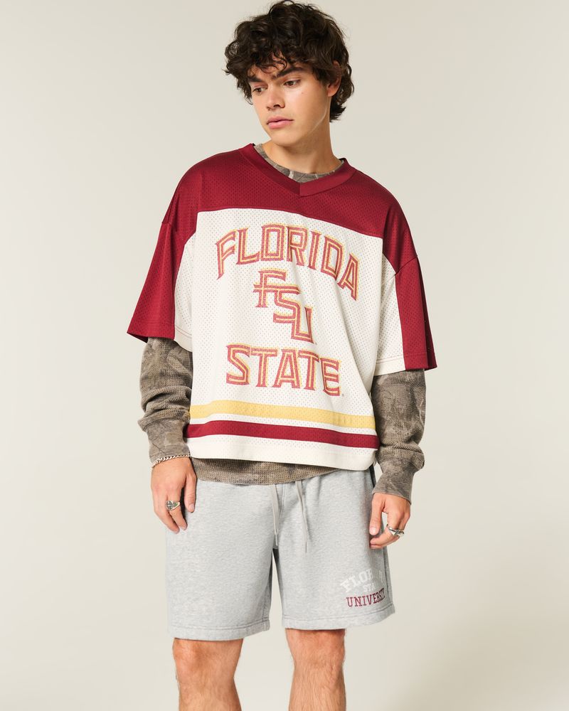 Super soft fleece shorts with a drawstring waist and official licensed Florida State University print graphics. Pockets, right zipper pocket. Imported.