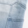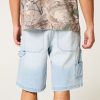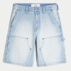 Classic painter-style denim shorts in a light wash, designed with a baggy fit. Left loop detail, extra pockets, fading, reinforced knee stitching. Hits at the knee. Imported.