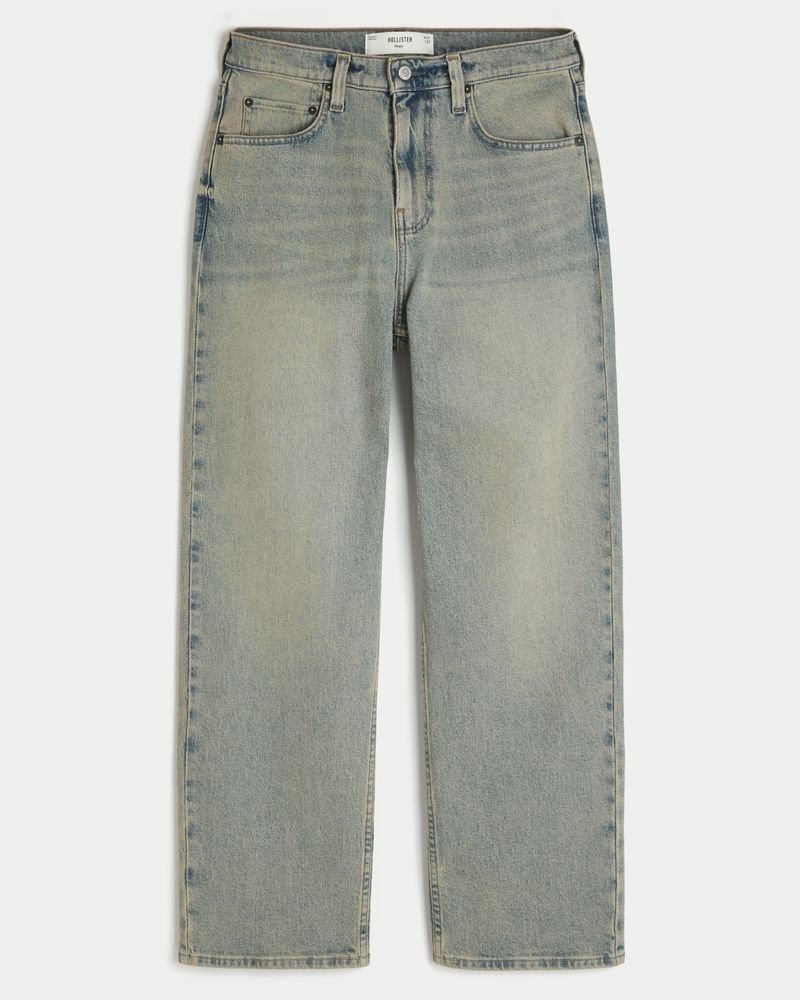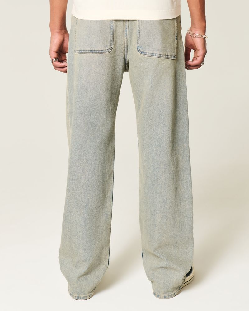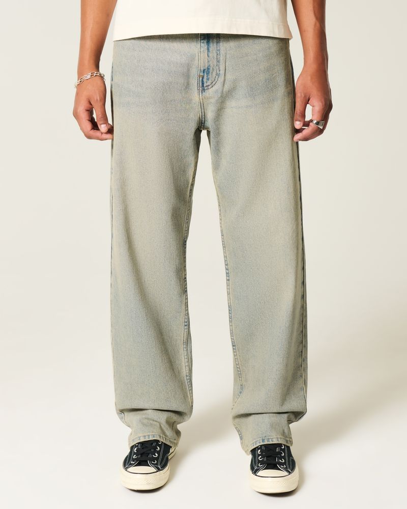 Comfortable denim jeans in a light wash, designed with a baggy leg. Fading, whiskering. Imported.