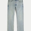 Comfortable Y2K-inspired denim jeans in a light wash, designed with a slim straight leg. Fading, whiskering. Imported.