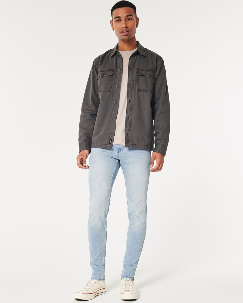 Designed with a skinny fit through the hip and thigh, these light wash jeans are made with Advanced Stretch denim, fading and whiskering, five-pocket styling and iconic back pocket embroidery. Imported.