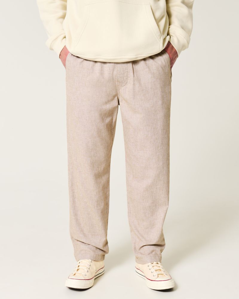 Comfortable pants in a soft linen blend, designed with a pull-on drawstring waist and loose leg. Pockets. Imported.