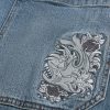 Medium Wash Embroidered Shark Graphic Skater Baggy Jeans