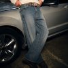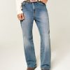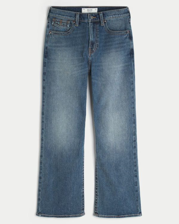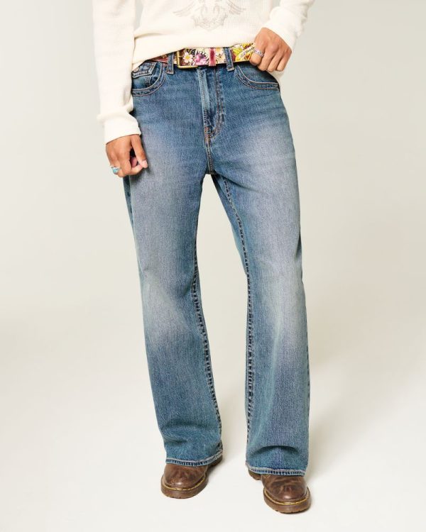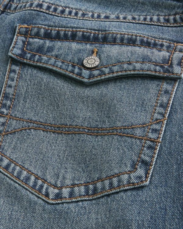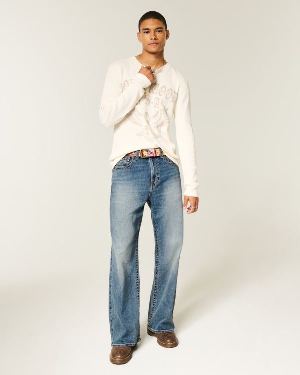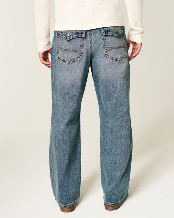 Men’s Medium Wash Flap Pocket Baggy Bootcut Jeans