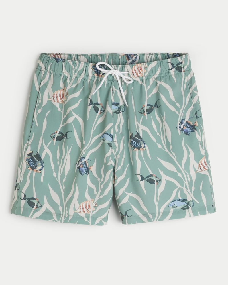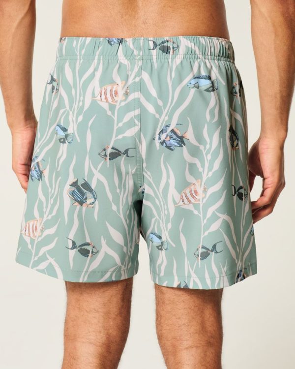 Shorter-length swim trunks that hit mid-thigh. Featuring comfortable 4-way stretch swim fabric and a 6″ inseam. Pockets. Imported.
