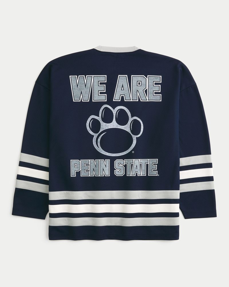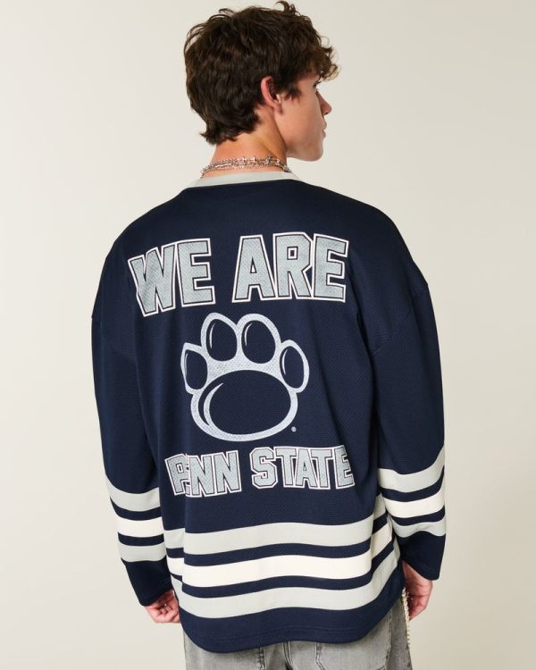 A classic hockey jersey in super soft mesh fabric, featuring official licensed Penn State Pennsylvania State University Nittany Lions print graphics at the front and back. V-neckline, long sleeves. Imported.