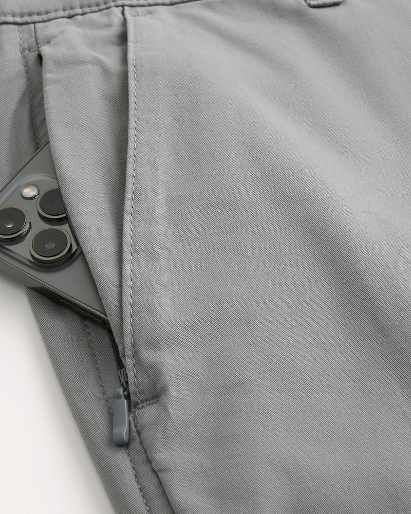 Ultra-comfortable twill chino pants with stretch, designed with a slim leg from top to bottom. Pockets, right zipper pocket. Imported.