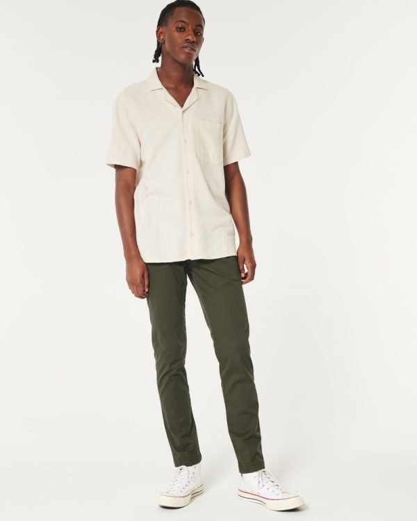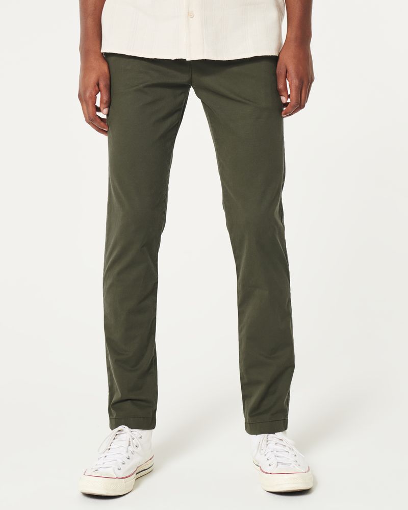 Comfortable chinos in stretch twill fabric, featuring side pockets and back pockets. Skinny leg. Imported.
