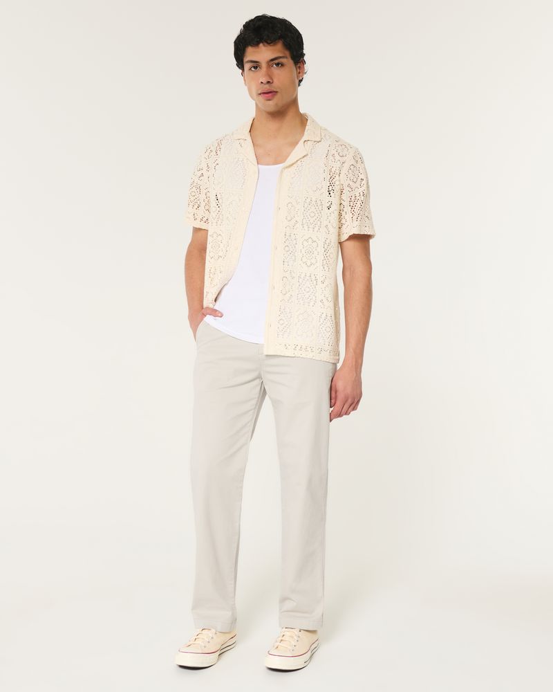 Ultra-comfortable twill chino pants with stretch, designed with a straight leg from top to bottom. Pockets, right zipper pocket. Imported.