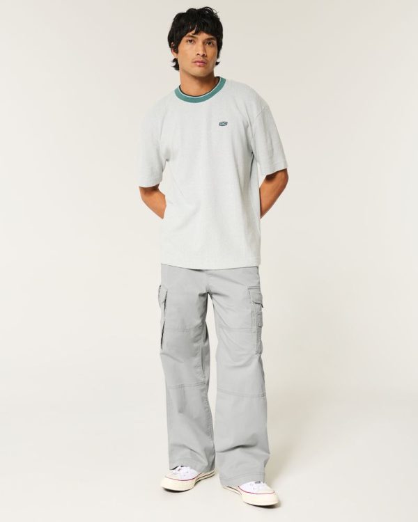 Comfortable twill pants with stretch, designed with a super baggy leg and side cargo pockets. Stretch. Imported.
