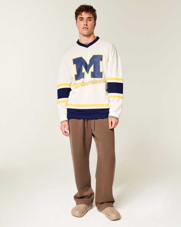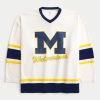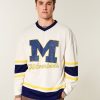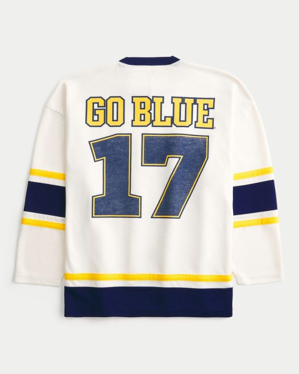 A classic hockey jersey in super soft mesh fabric, featuring official licensed University of Michigan Wolverines print graphics at the front and back. V-neckline, long sleeves. Imported.