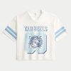 This classic football jersey is made with soft mesh fabric and features official licensed University of North Carolina at Chapel Hill print graphics. V-neckline, short sleeves. Baggy Crop Fit. Imported.