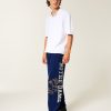 Super soft fleece joggers featuring official licensed University of Notre Dame print graphics. Drawstring waist, pockets, right zipper pocket, baggy leg, cinched hem. Imported.