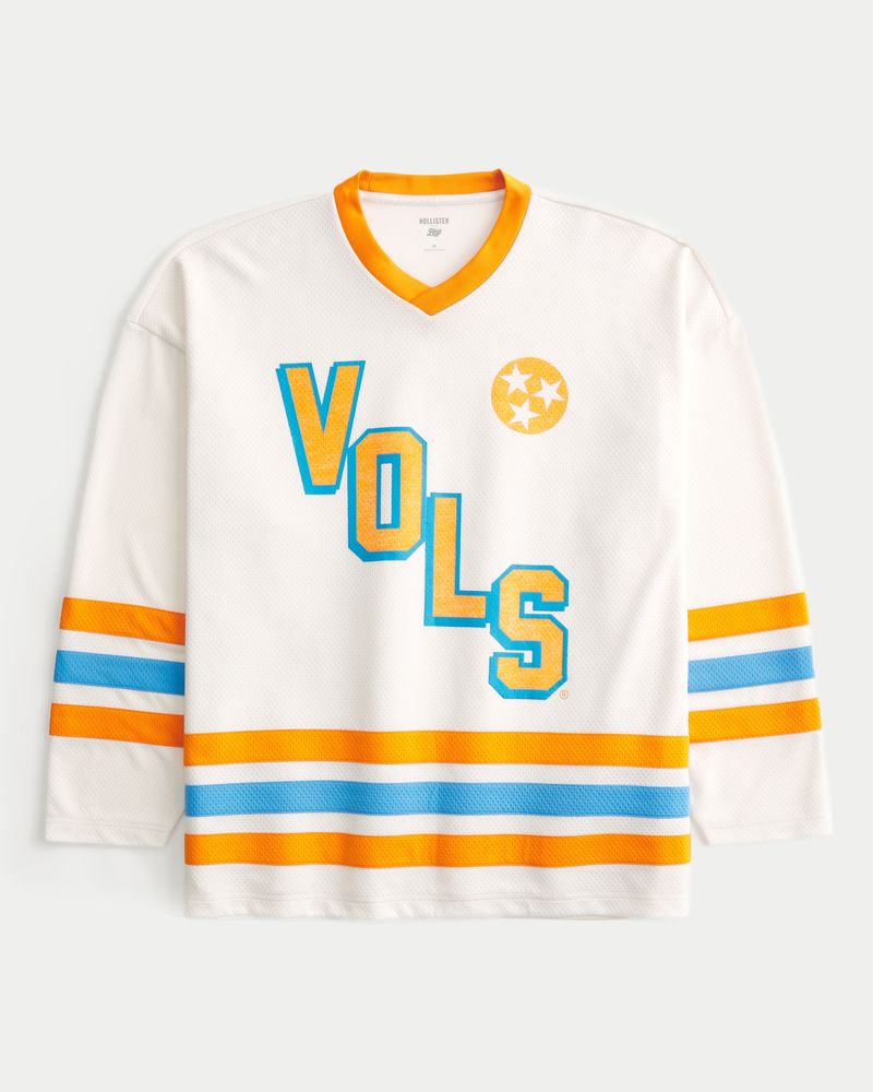 A classic hockey jersey in super soft mesh fabric, featuring official licensed University of Tennessee Volunteers print graphics. V-neckline, long sleeves. Imported.