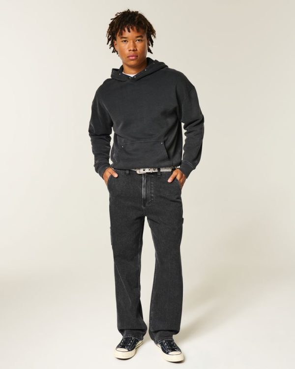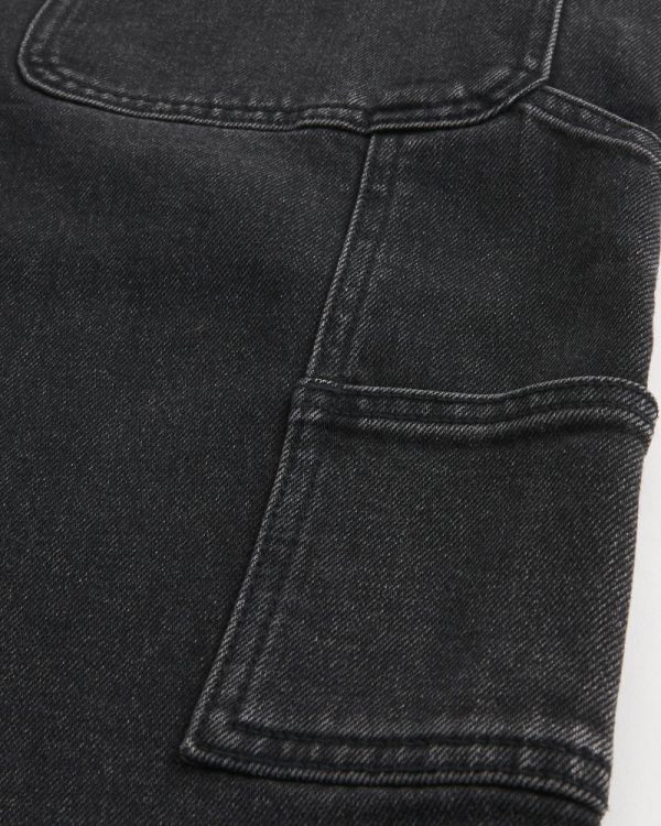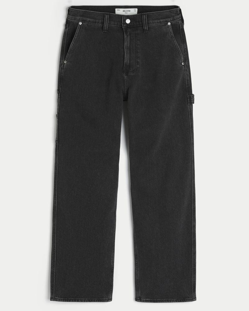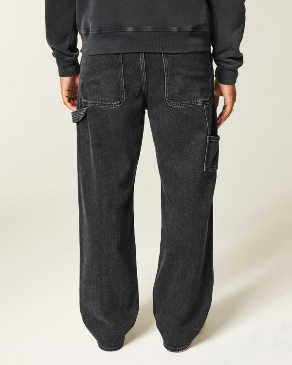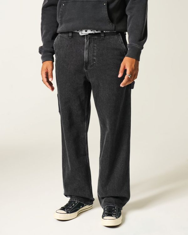 Comfortable denim jeans in washed black, designed with a baggy leg. Left painter loop, extra pockets. Imported.
