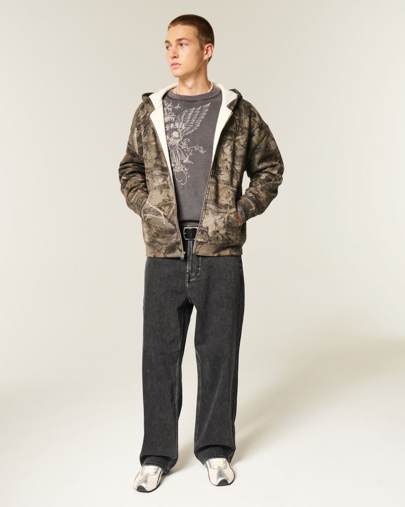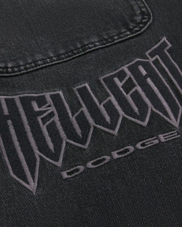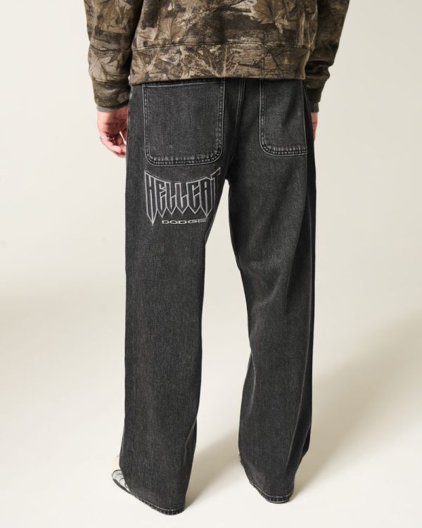 Comfortable denim jeans in washed black, designed with a baggy leg. Official licensed Dodge Hellcat graphic embroidery at the back pocket. Imported.
