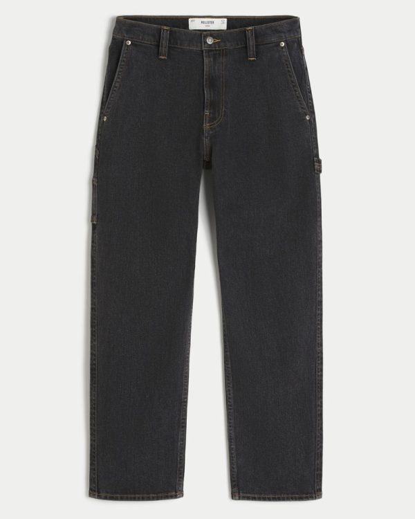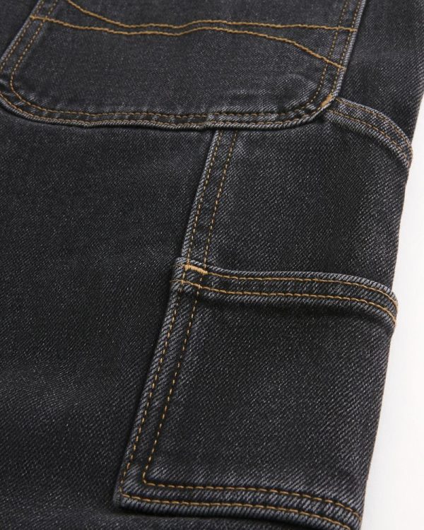 Comfortable denim jeans in washed black, designed with a loose leg, left painter loop detail and extra pockets. Imported.