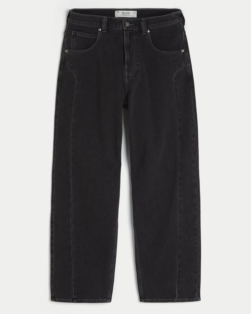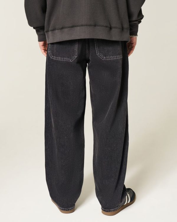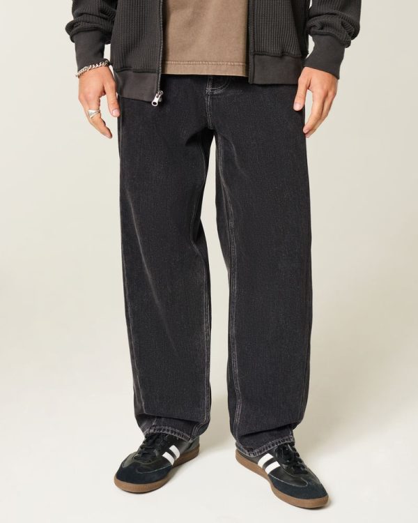 Men’s Washed Black Seamed Skater Baggy Jeans