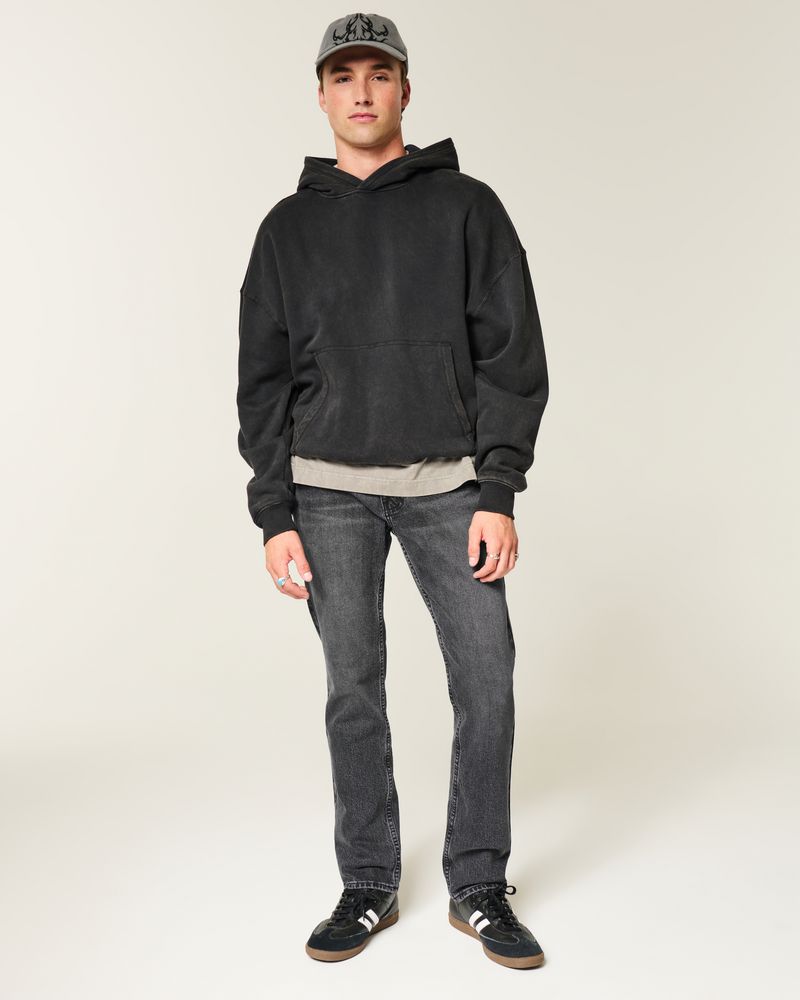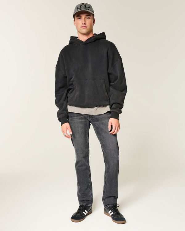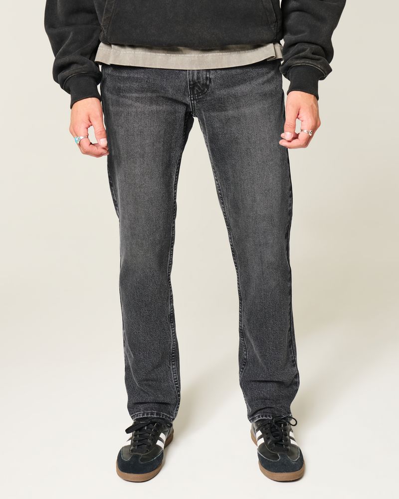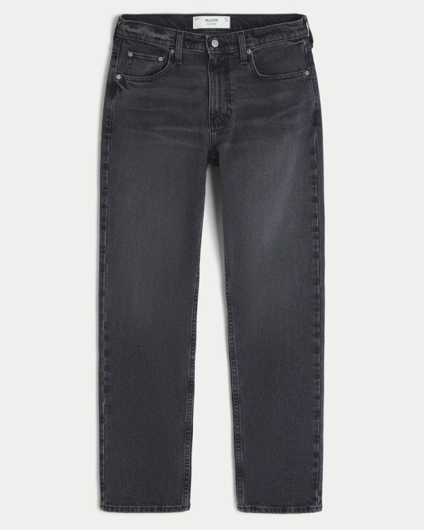 Comfortable denim jeans in washed black, designed with a slim straight leg. Fading, whiskering. Imported.