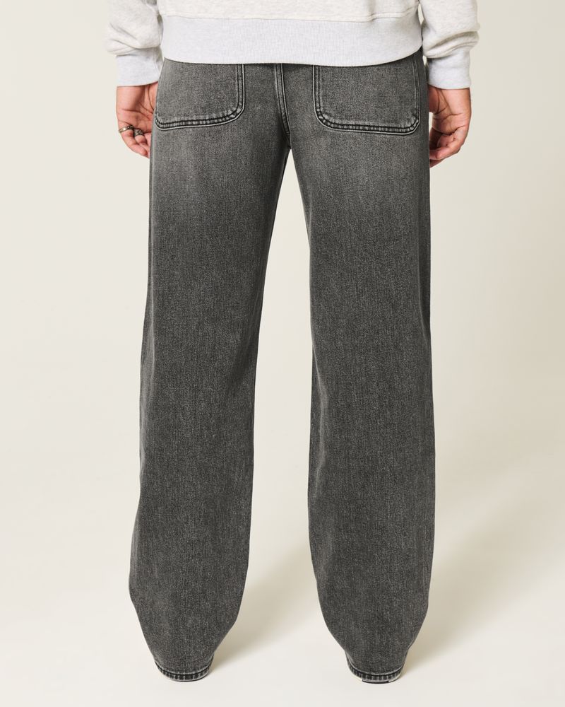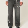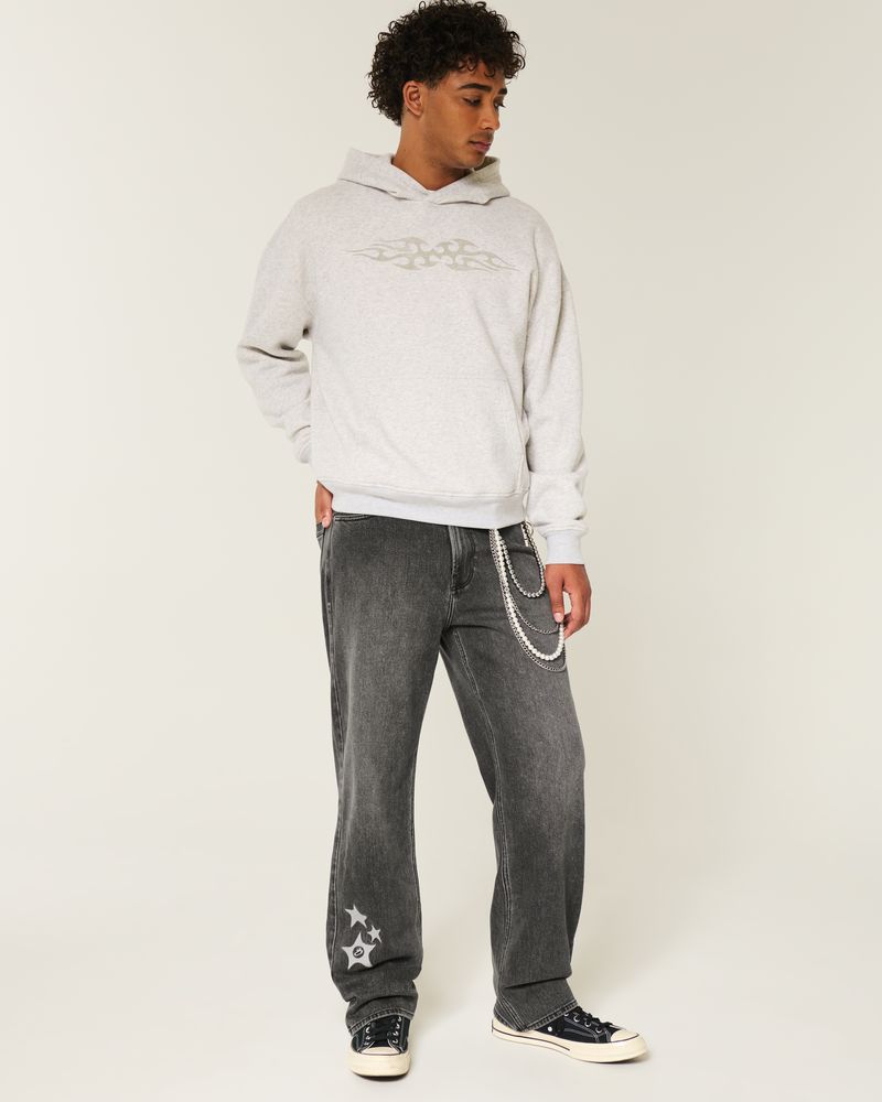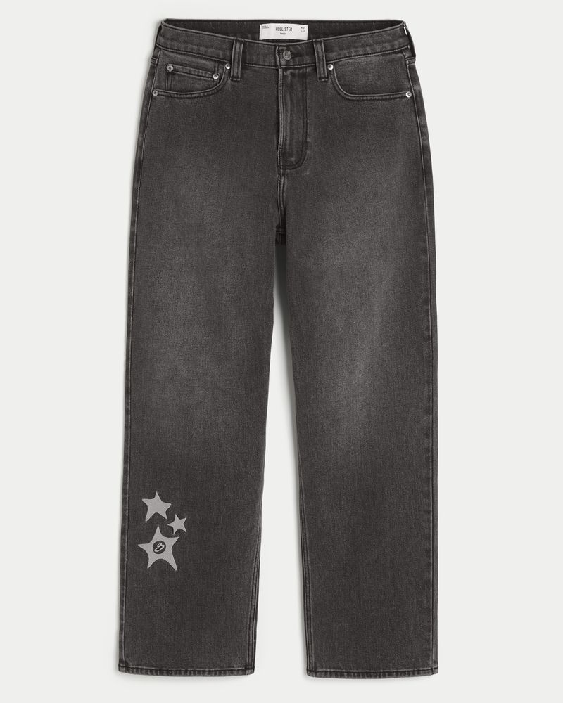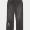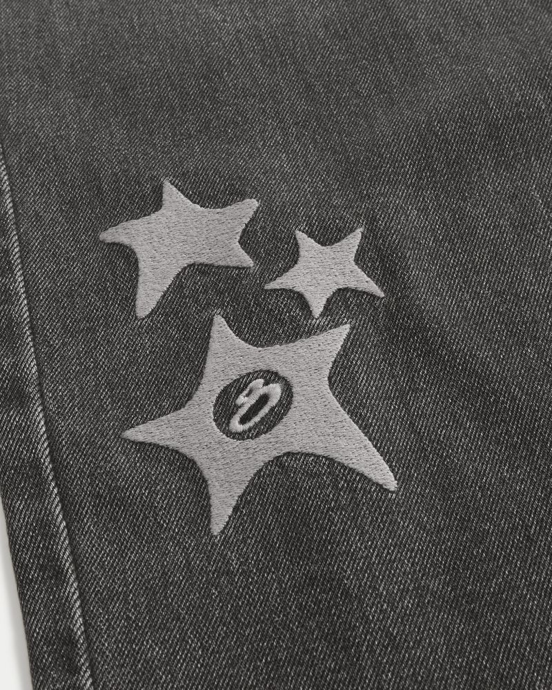 Comfortable denim jeans in washed black, designed with a baggy leg. Featuring star graphic embroidery at the right leg, fading. Imported.