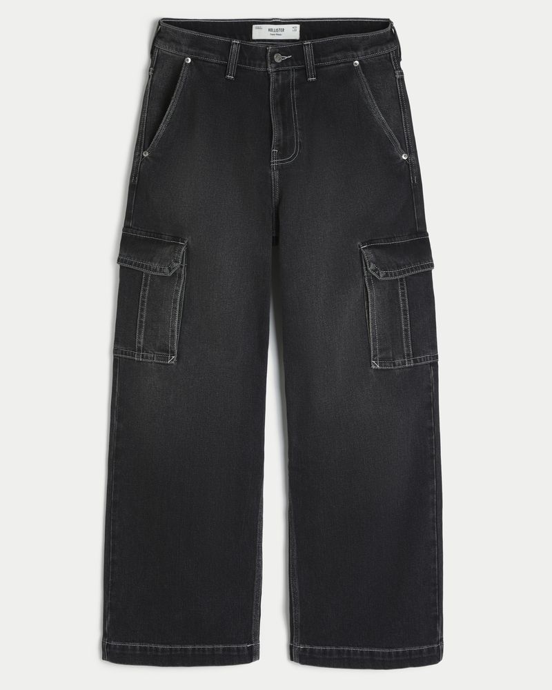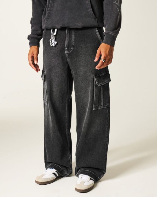Men’s Washed Black Super Baggy Cargo Jeans