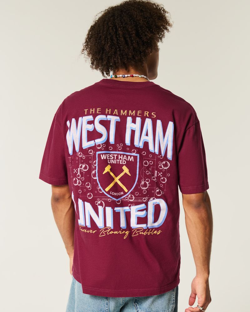 A super soft 100% cotton tee featuring official licensed West Ham United Football Club print graphics at the front and back. Crew neckline, short sleeves. Imported.