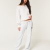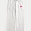 Super soft fleece sweatpants featuring an embroidered American Flag detail at the left leg. Pockets, soft drawstring waist, straight leg. Imported.