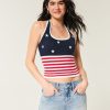 A cozy and super soft top in crochet-style fabric, featuring an all-over American Flag stars and stripes pattern. Halter straps, lined bust, square neckline. Slim Fit. Imported.