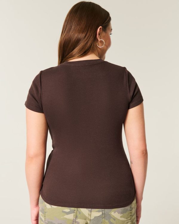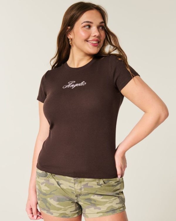 A super soft Y2K-inspired baby tee designed with a slightly shrunken silhouette, featuring Angelic graphic embroidery. Short sleeves, crew neckline, cozy ribbed fabric. Slim Fit. Imported.