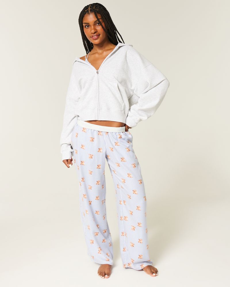 Super soft flannel pants designed with a banded adjustable-rise waist and baggy leg. Pockets, cute all-over puppy graphic pattern, foldover waist with interior logo details. Imported.